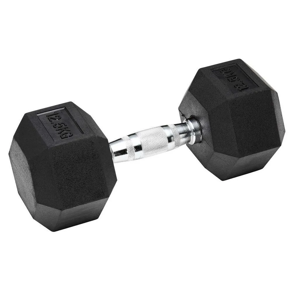 12.5KG Hex Rubber Dumbbell with Chrome Handle