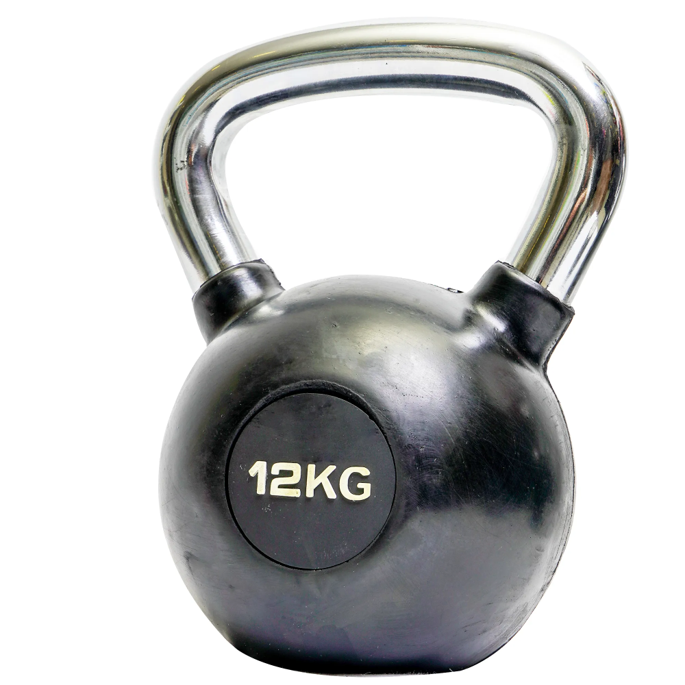 Enhance your fitness routine with the Rubber 12Kg Kettlebell Workout, perfect for strength, endurance, and full-body exercises. This kettlebell suits beginners and experienced athletes alike.