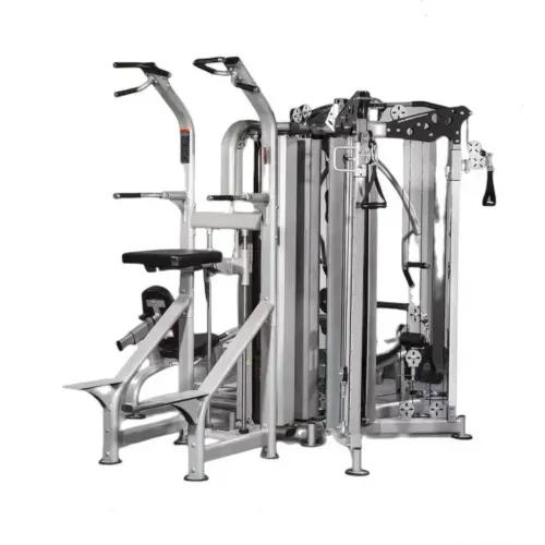 Experience ultimate home fitness with the French Fitness X12 Functional Trainer. Four stations in one, including lat pulldown, leg press, dip machine, and vertical knee raise. Transform your workouts today