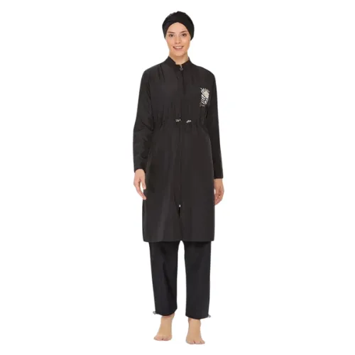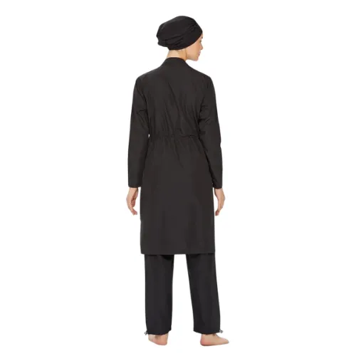 Modest swimwear with hijab and practical water-repellent fabric