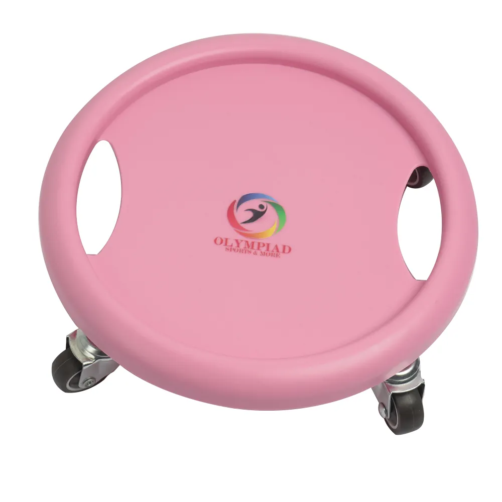 The Olympiad Abdominal Roller Trainer features four wheels, a non-slip handle, and durable PVC construction, providing full-body workouts for core, arms, back, shoulders, and legs.
